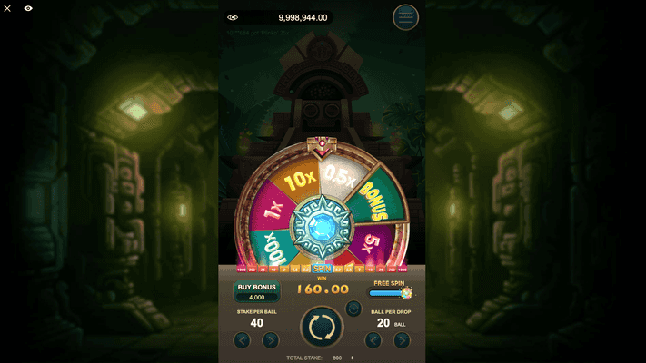 The energy collection system is what makes Aztec Plinko special. Instead of simple drops, you accumulate mystical energy through hits on central bumpers, like charging ancient magic. The Spin The Wheel feature activates when collecting sufficient balls in the 'SPIN' zone, unlocking winnings up to 100x per ball or direct bonus entry.