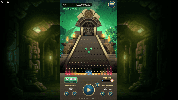 Aztec Plinko by Funky Games is a mystical journey into the heart of an ancient Aztec pyramid that surpasses ordinary Plinko games. Based on the classic concept from "The Price is Right" show from 1983, the game elevates simple ball-dropping mechanics with stunning visual effects and unique features.