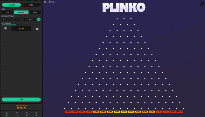 Choose how many rows (8–16) you want on your Plinko board. More rows increase volatility and winning potential.